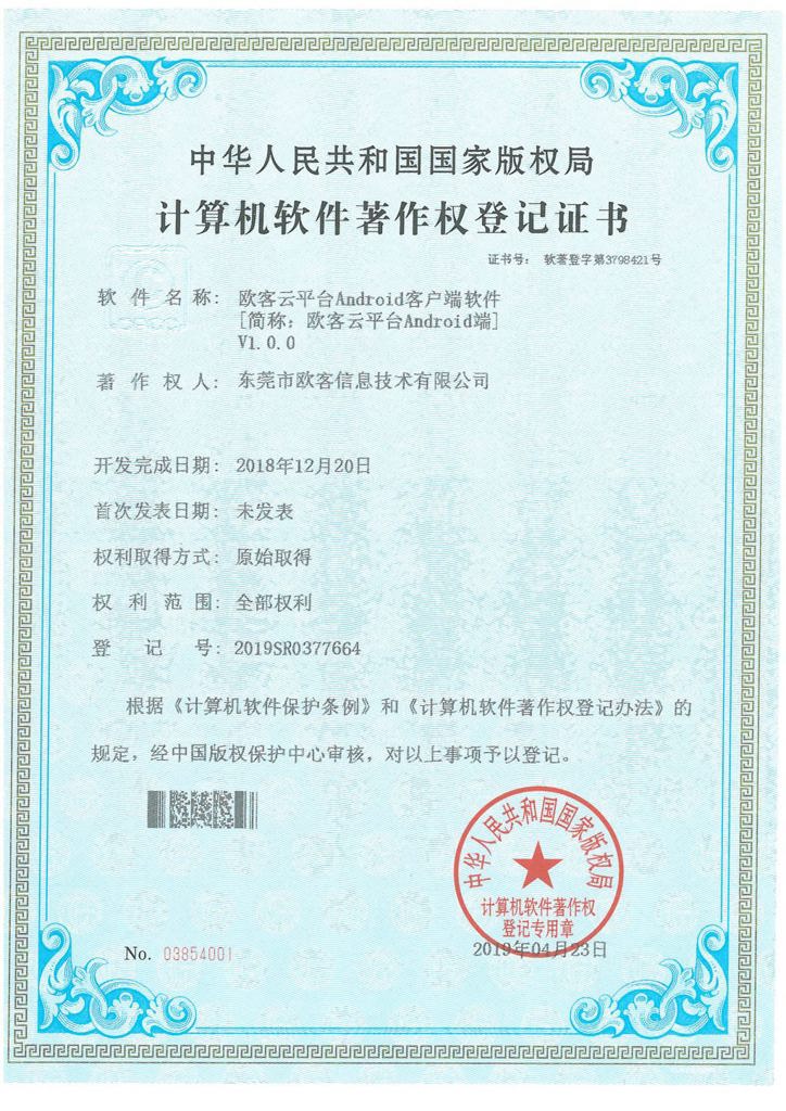 欧客科技一直以设计研发为企业经验的重中之重,成立以来不断累积软著和专利,为打造优质的产品提供坚实的基石。